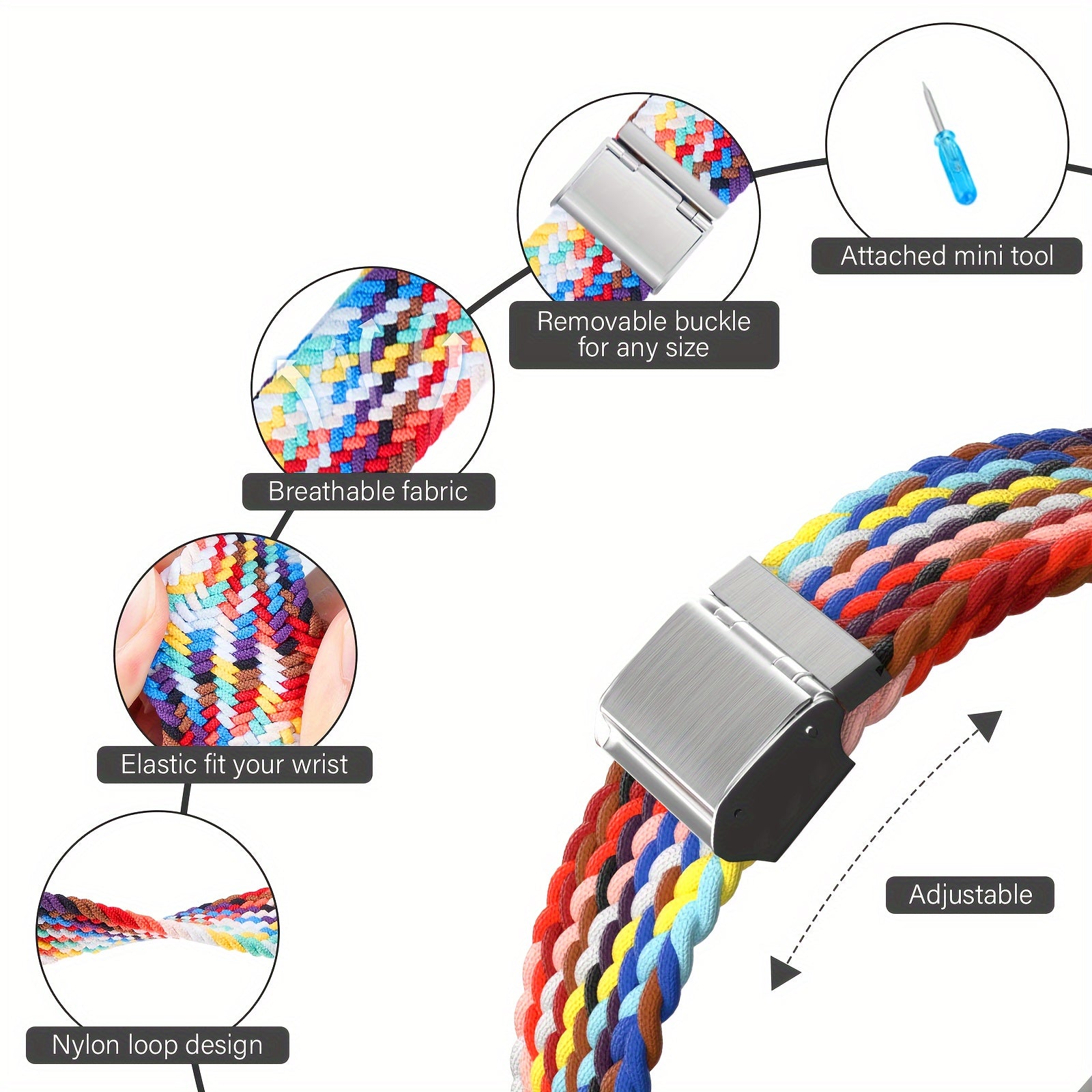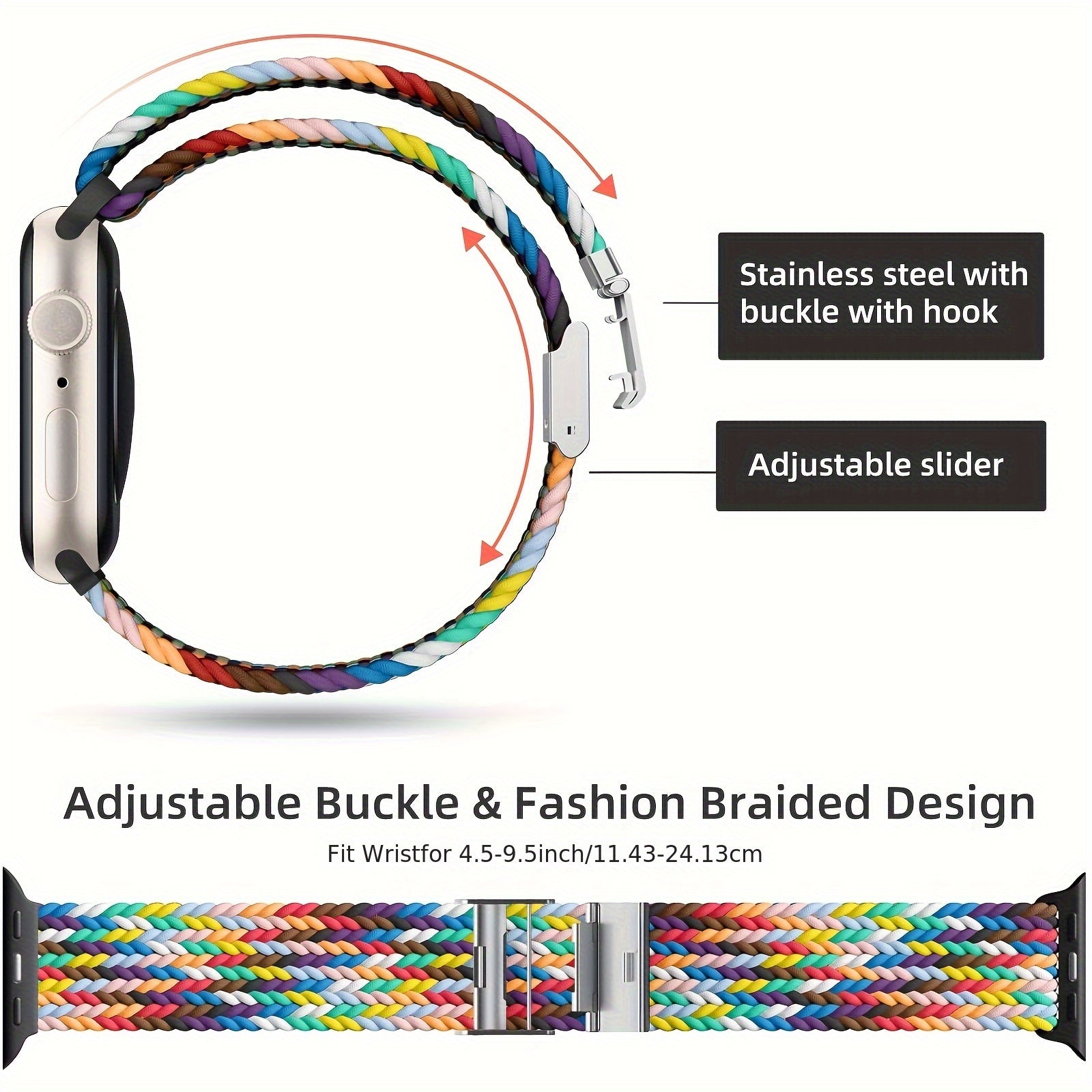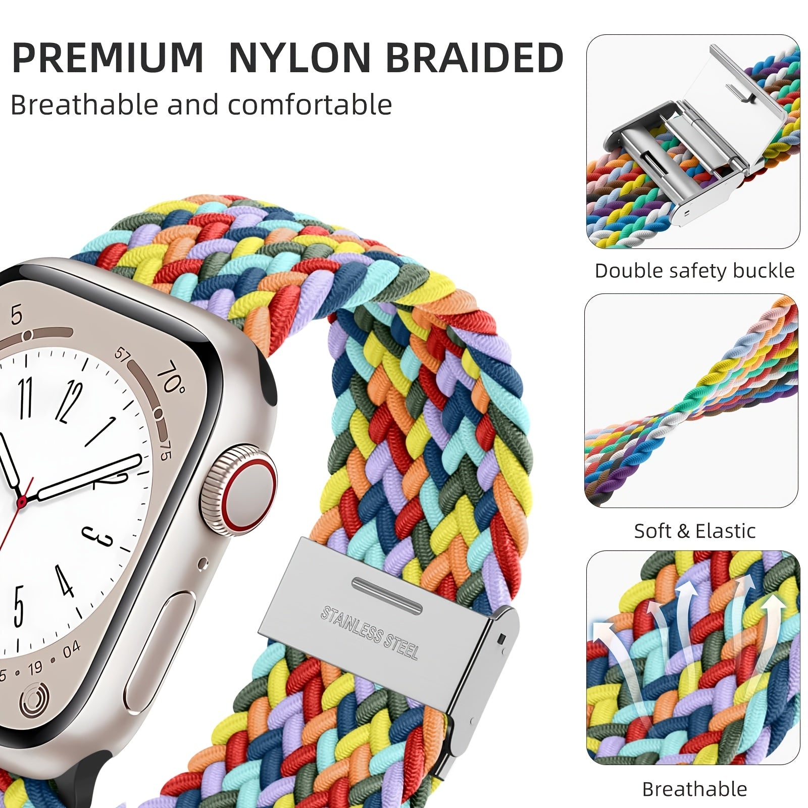 Apple Watch CompatibleMaterial :NylonClasp Type: Push button butterfly claspBuckle Material: MetalWater Resistance: Not water resistant